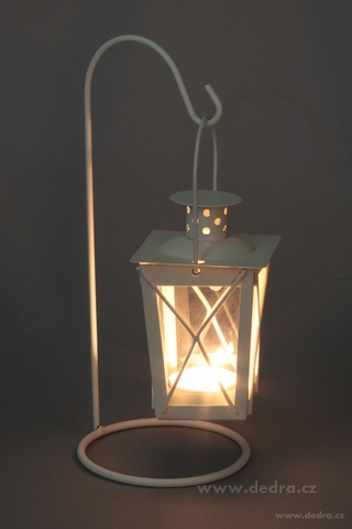 Kovová lucerna na stojánku.