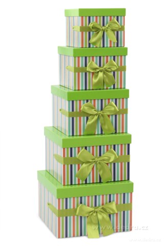 Praktické úložné boxy využijete na uchovávání a skladování věcí, ale také např: na uchovávání upečených dobrot, nebo na balení dárků. Boxy jsou vyrobeny z velmi tvrdého knihařského kartonu. Moderní dekorativní design, vnější povrch je vysokého lesku a každý box je opatřen velkou dekorativní stuhou.