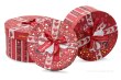Max. rozměry: průměr 27,5 x 14 cm, průměr 24,5 x 12,5 cm, průměr 21,5 x 11 cm. Praktické úložné boxy využijete na uchovávání a skladování věcí, ale také např: na uchovávání upečených dobrot, nebo na balení dárků. Boxy jsou vyrobeny z velmi tvrdého knihařského kartonu. Moderní dekorativní design, vnější povrch je vysokého lesku a každý box je opatř...
