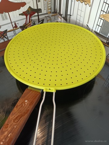 Poklice pro smažení na pánvích do průměru 30 cm. Určeno jako poklice při smažení na pánvích. S použitím NEPRSKADLA Vám nebude tuk prskat po celém sporáku. Využijete také jako pokličku, která zabrání, aby se k pokrmu nedostal hmyz. Hodí se také při slévání vody po vaření těstovin nebo jiných pokrmů. Vyrobeno ze silikonu a kovu.