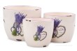 Sada 3 ks keramických obalů na květináč s motivem levandule a lesklým finišem potisku.