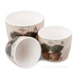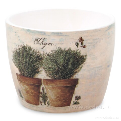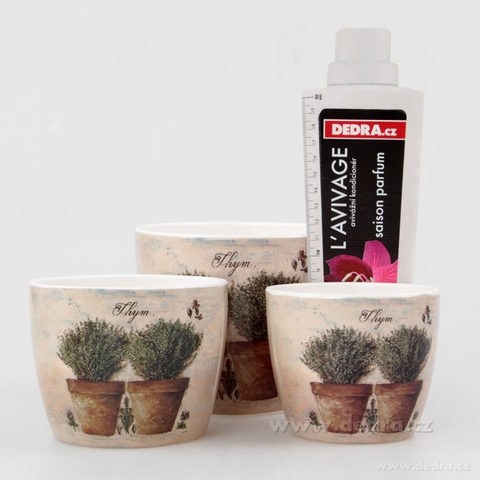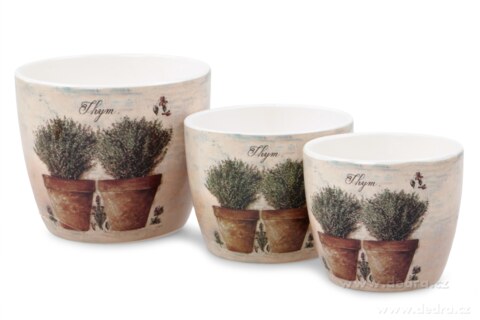 Sada 3 ks keramických obalů na květináč s bylinkovým motivem a lesklým finišem potisku.