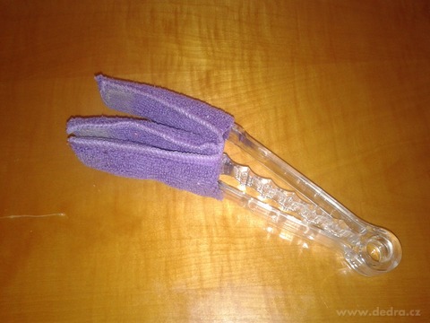 Kleště na čištění žaluzií. Dodáváme včetně náhradního návleku z mikrovlákna, který lze prát. Vyrobeno z transparentního plastu. Max. rozměry: 21 x 9 x 2,5 cm