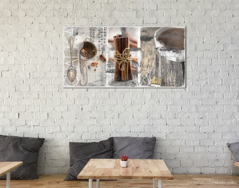 Digitální tisk na pevné canvasové plátno zafixované na pevném MDF rámu. Snadné zavěšení.