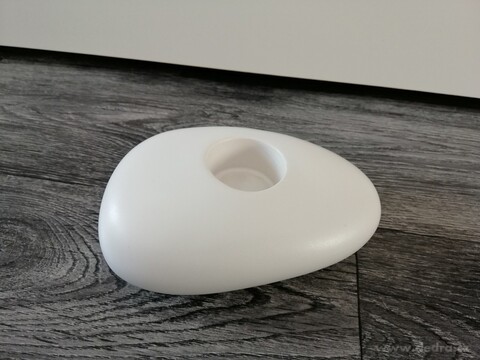Keramický svícen na čajovou svíčku ve tvaru velkého přírodního oblázku v přírodní barvě slonové kosti.
