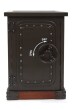 Dřevěný trezor s kovovými prvky. Nízká skříň se 2 policemi ve tvaru trezoru. Originální otevírání/zavírání funkční kovovou kladkou s otočným kolem ve směru nápisů OPEN/SHUT. Černá barva. Rozměr: Š 53 x H 42 x V 77 cm.