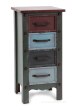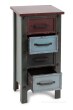 Dřevěná komoda se 4 různobarevnými zásuvkami.