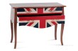 UK FLAG STYLERuční malba motivu anglické vlajky na předních dílech s lesklým finišema kovovými úchyty. Ideální jako pracovní nebo kosmetické stolky.Vhodný doplňky pracovny, ložnice, haly nebo chodby. Dřevěný stůl se 2 velkými zásuvkami s kovovými úchyty.Rozměr: Š 90 x H 38 x V 70 cm.