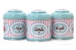 3 dílná sada kovových dóz SUGAR, COFFEE, TEA, které mají vzduchotěsné