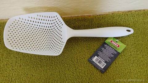 RYCHLOCEDNÍK Cedníkový podběrák z odolného plastu lze použít k nabírání uvařené zeleniny a masa z polévky (a knedlíky!). Vhodný do myčky, mikrovlnky a mrazničky. Rozměr: délka 33,5 cm, délka naběrací plochy 12 cm, hloubka lžíce 6,5 cm. Hloubka 6,5 cm usnadňuje vyndávání velkých porcí.