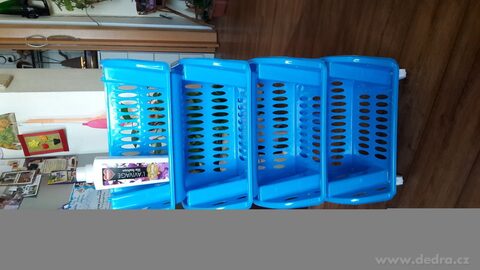 4 PATROVÝ PLASTOVÝ REGÁL NA KOLEČKÁCH,univerzální použití, udrží pořádek v celé domácnosti.Snadná údržba, vše přehledně srovnáte.Max. rozměry sestaveného regálu: Š 39 x H 29 x V 79 cm. Koupelna, kuchyně, komora, chodba, pracovna nebo dětský pokoj,ve všech těchto místnostech regál jistě oceníte. Možnost kombinovat různé barvy, zakoupením2 regálů m...
