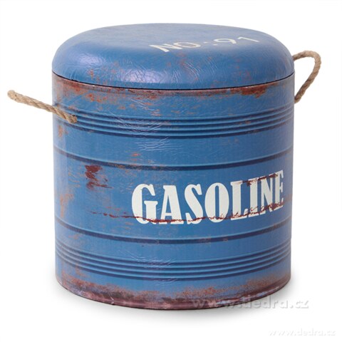 Úložný box/taburet ve tvaru barelu z ekokůže s patinou.