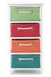 Dřevěný regál/komodase 4 výsuvnými košiš 36 x h 33 x v 71 cm, s výsuvnými boxy- koši v různých barvách (multicolor). MULTICOLOR PATROVÉ REGÁLYIdeální na uskladnění drobností v dětském pokojíčku, spodníhoprádla v ložnici, hřebenů a sponek v koupelně. Polstrované boxy - vnější část z odolného textilu s lanovými úchyty.