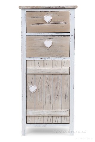 dvířky, úchyty ve tvaru srdce, záměrná patina.