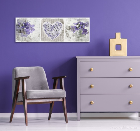 3D OBRAZY NA PLÁTNĚ 30 x 90 cm s motivem 3D srdce.Na obrazech jsou umístěny 3D kovové prostorové aplikace.
