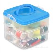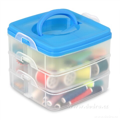 Skladovací box 3 patrový, na drobnosti v celé domácnosti, odolný plast. Uvnitř je každé patro rozděleno na dvě stejné části o rozměru š 15 x h 7,5 x v 4 cm. S praktickým držátkem na přenášení.