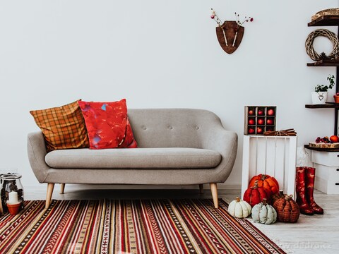 Potah na polštář se sametovým povrchem, červené listí. Grafický potisk z obou stran. Rozměr: 45 x 45 cm, materiál 100% PES. Uzavíratelný na zip.
