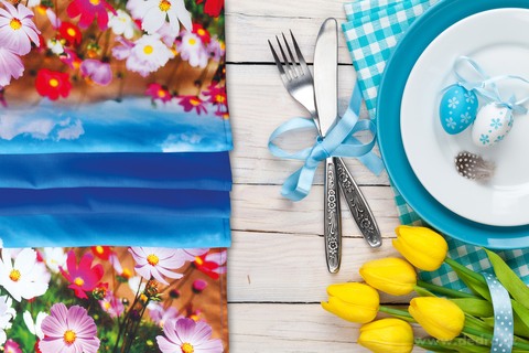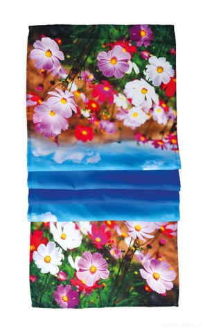 Květinový běhoun na stůl 40 x 150 cm zdobený celoplošným květinovým potiskem, materiál 100% PES. ELEGANTNÍ KVĚTINOVÝ FOTOPOTISK