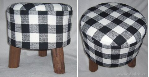 Kulatý taburet „trojnožka“ černo-bílé kostky s vysokým polstrovaným sedákema 3 dřevěnými nožičkami. Průměr sedáku š 34 x v 20 cm Celková výška 34 cm Taburety jsou variabilním a dekorativním doplňkem interiéru.