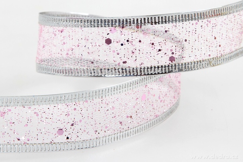 Dekorační síťovaná stuha s flitry a výrazným lemem s vetkaným