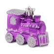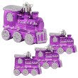 4 ks fi alových ozdobných lokomotiv s metalickým fi nišem zdobené třpytivou malbou, výška všech: 5,5 cm a délka 6,5 cm