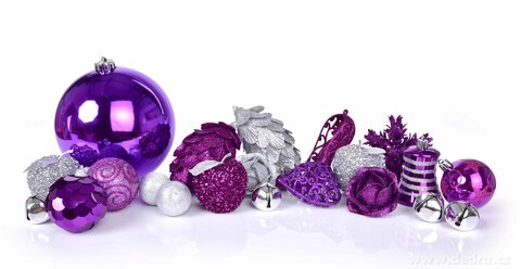 V BARVÁCH PANÍ ZIMY S NÁDECHEM LUXUSU S vyšívanou brokátovou látkou a třpytivým finišem, bohatě zdobený lesklými flitry a barevnými kamínky. 5 ks zvonečků s lesklým fi nišem zdobené třpytivou spirálou, výška všech: 7 cm