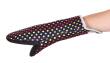 Odolná TERMOCHŇAPKA z neoprenu s barevnými puntíky. Univerzální pro levou i pravou ruku, protiskluzový povrch, prodloužená délka chrání i předloktí. Odolná do 260 °C, pratelná na 30 °C. Rozměr 14 × 33 cm.