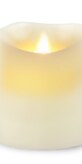 LED svíčka s pohyblivým jazýčkem imitující plápolající plamínek. Z přírodního vosku, krémová, hladká,