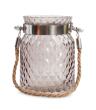 Zahal svůj prostor romantickým barevným světlem. Elegantní design do moderního i klasického interiéru. Lze použít i jako vázu pro živé květiny či suchá aranžmá. Skleněný kouřový svícen s lanovým uchem na přenášení, na čajovou nebo menší válcovou svíčku, reliéfní povrch. Rozměry: výška 15 cm, spodní průměr 12 cm, horní průměr 10 cm. Materiál: sk...