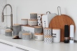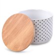 Keramická dóza s masivním víkem z vysokotlakého bambusu a silikonovým těsněním, výška 8,5 cm, průměr 10 cm, max. objem: 450 ml.
