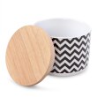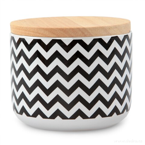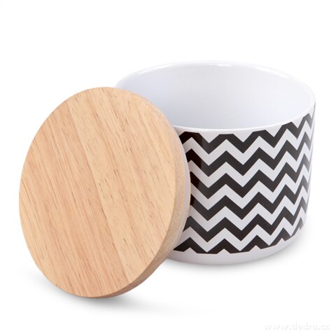 Keramická dóza s masivním víkem z vysokotlakého bambusu a silikonovým těsněním, výška 8,5 cm, průměr 10 cm, max. objem: 450 ml.