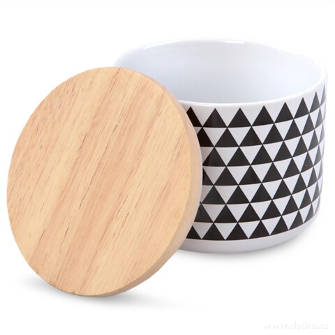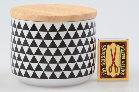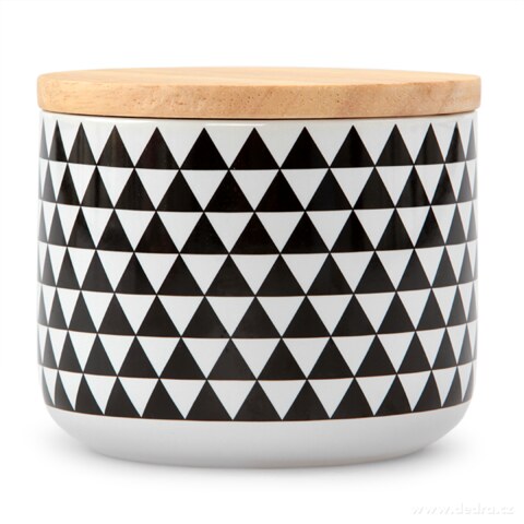 Keramická dóza s masivním víkem z vysokotlakého bambusu a silikonovým těsněním, výška 8,5 cm, průměr 10 cm, max. objem: 450 ml.
