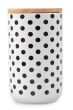 Keramická dóza s masivním víkem z vysokotlakého bambusu a silikonovým těsněním, výška 17 cm, průměr 10 cm, max. objem: 980 ml.
