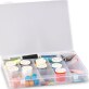 Obsahuje 15 přihrádek z toho: 12 malých 4 x 4,5 cm, 2 větší 5 x 8 cm, 1 podlouhlá 7,5 x 4 cm.