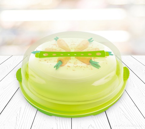 Využiješ k servírování, přenášení i skladování upečených dobrot, například dortů, zákusků, jednohubek, chlebíčků,... Můžeš využít také ke skladování pečiva = nedochází k jeho okorání.Vyrobeno z odolného plastu vhodného pro styk s potravinami, lze mýt v myčce, vhodné do chladničky, mrazničky i mikrovlnné trouby. Vnější rozměry: spodní průměr 34 cm, ...