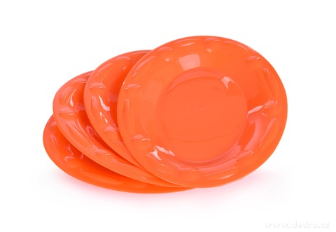 Sada 4 ks oválných talířů z odolného plastu, s ozdobnými prolisy na okrajích talířů.