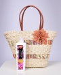 DONNA je stylová kabelka vyrobena z přírodního výpletu z pevné papírové slámy, doplňuje ji barevná vpletená látka po obvodu s hnědou květinovou přízdobou. Delší ucha z ekokůže pro pohodlné nošení v ruce i přes rameno. Uzavírání na zip, uvnitř podšívka a postranní kapsa na drobnosti.