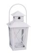 Kovová lucernička na čajovou svíčku bílá, prosklená, s kovovým držátkem na pověšení.