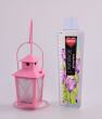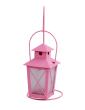 Kovová závěsná lucernička pastelově růžová na čajovou svíčku, prosklená - pískované sklo, lucerničku lze zavěsit nebo