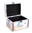 Dekorativní kufr Lavender s romantickým motivem, dřevěný, na povrchu ekokůže s koženým uchem a kovovými prvky.