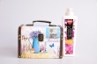 Dekorativní kufr Lavender s romantickým motivem, dřevěný, na povrchu ekokůže s koženým uchem a kovovými prvky.