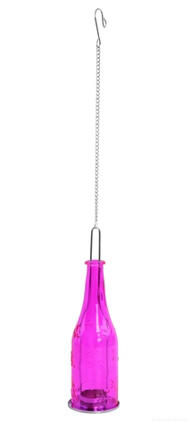 Svícen na čajovou svíčku v pastelové fuchsiové barvě s praktickým kovovým držákem a řetízkem, lze