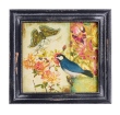 Dřevěný obraz s dobovou patinou, modrý ptáček.