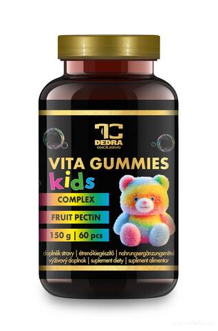 VITA GUMMIES KIDS jsou ovocní želé medvídci s jemnou jablečnou příchutí, kteří dětem dodávají důležité vitaminy a minerály pro růst a vývoj. Přírodní složení bez konzervantů a barviv. Vitaminy A, B6, B12 a jód podporují imunitu, energii a zdravý vývoj dítěte hravou a chutnou formou.