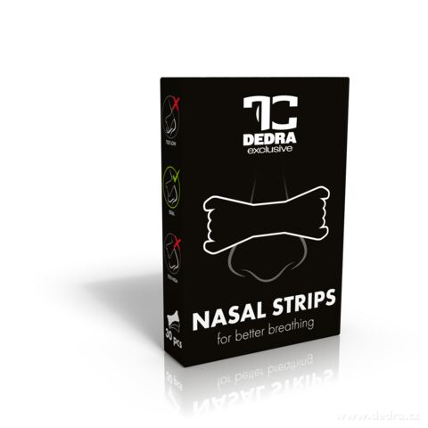 Nasal Strips – nosní pásky pro lepší dýchání. Pomáhají zmírnit pocit ucpaného nosu a mohou omezit chrápání. Ideální pro spánek, sport i při rýmě. Lehké, pohodlné a jednorázové. Dostupné v černé variantě, balení 30 ks.