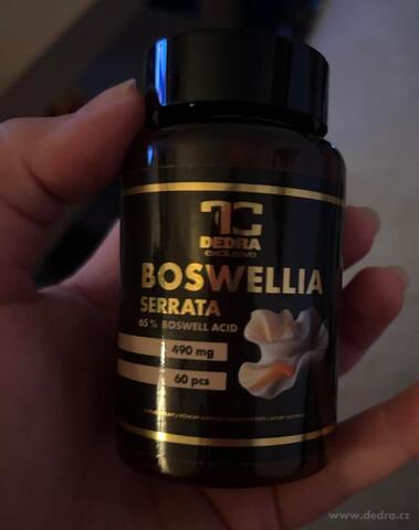 Boswellia serrata, 490 mg standardizovaný extrakt obsahující 65 % kyseliny boswellové.