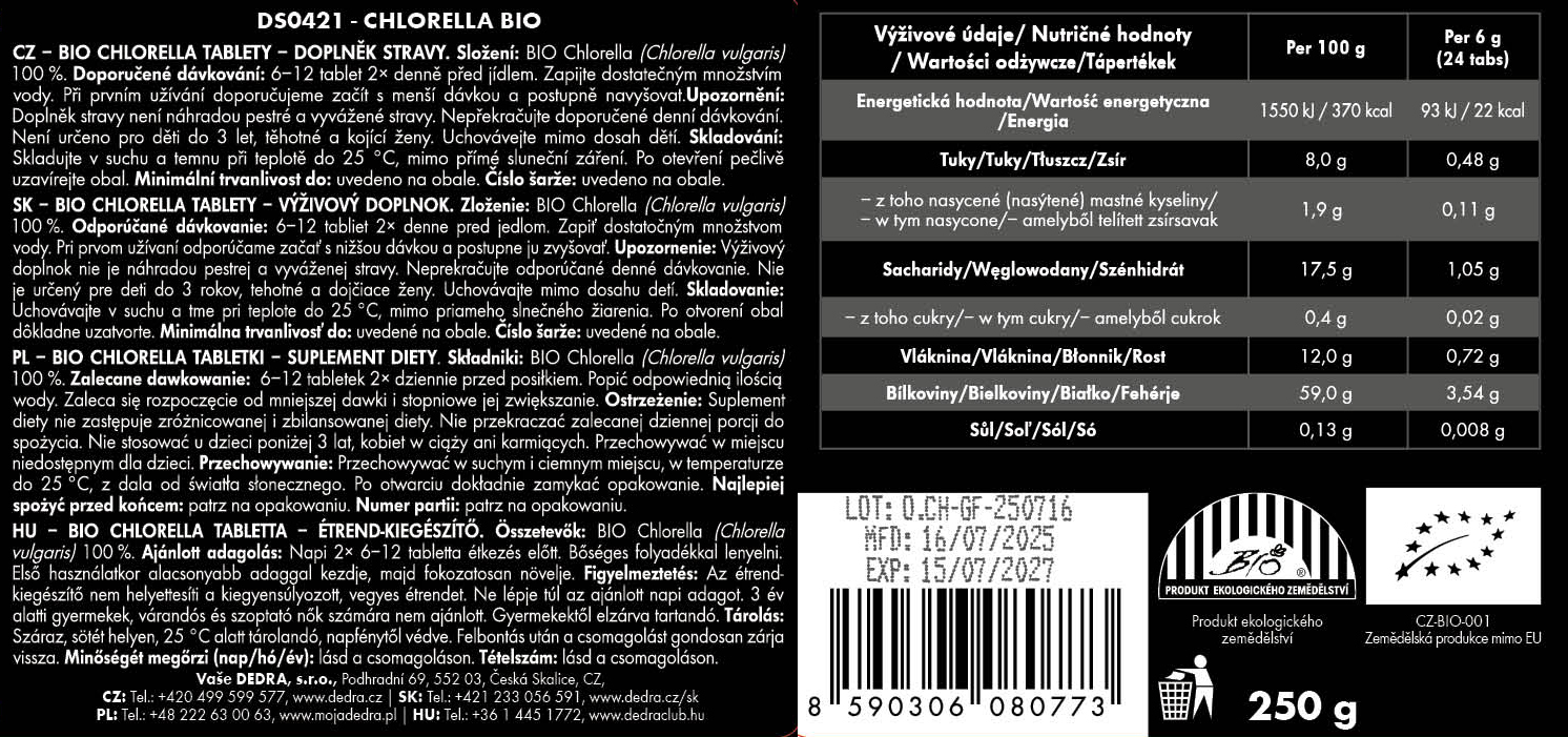 BIO CHLORELLA TABLETY | Detox & antioxidant & imunita | 1000 tablet x 250 mg | 250 g.