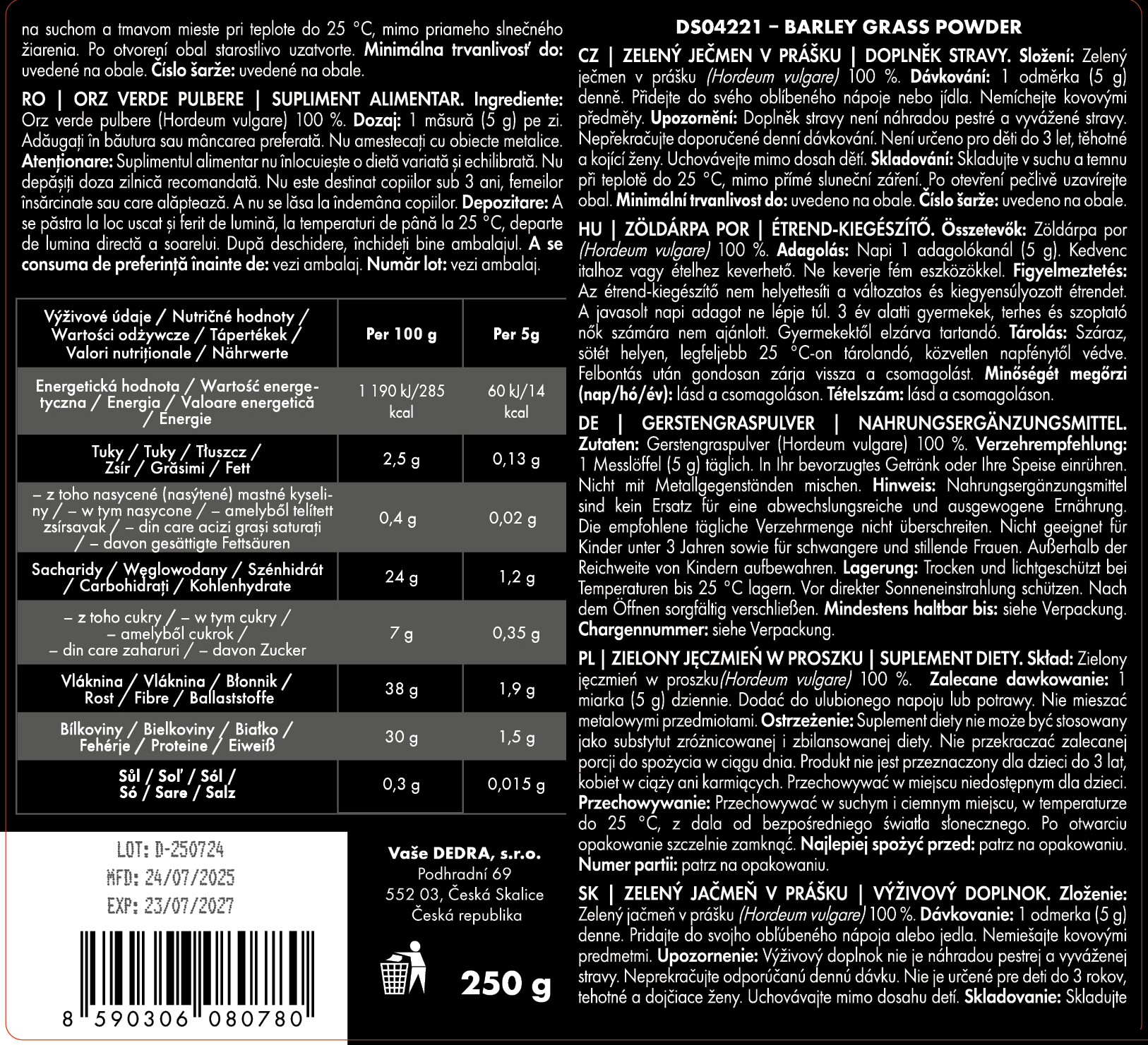Dovozce: Vaše Dedra s. r. o., Podhradní 69, Česká Skalice, Česká republika