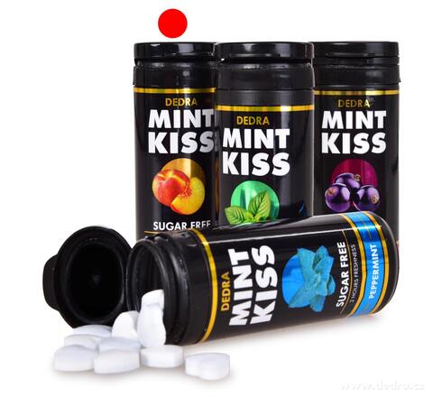 Mátové osvěžující pastilky bez cukru MINT KISS, peach mint, 28 g.