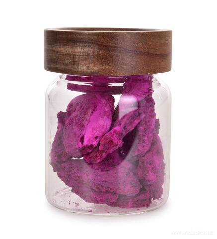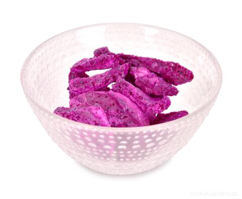 Lyofilizovaná pitaya (známá také jako dračí ovoce) je mimořádně jemná a lehce sladká svačina, která si zachovává všechny přednosti čerstvého ovoce. Díky procesu sušení mrazem neztrácí svůj charakteristický chuťový profil, barvu ani výživové hodnoty – a navíc získává lehkou, křupavou formu a delší trvanlivost.